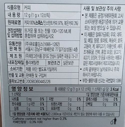 1️⃣ 일리 디카페인 (12개입 스틱형)